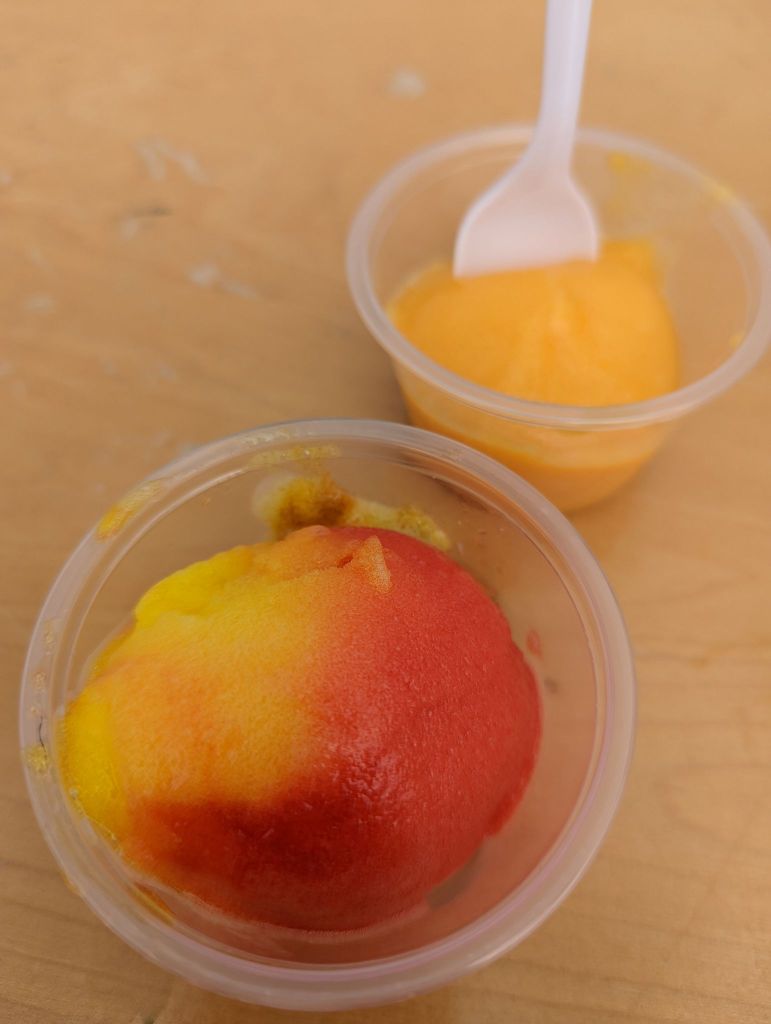 I have to say that the fair folks are so incredibly kind and hospitable. The rodeo director drove us around in his little golf cart to the bathroom and my car so I wouldn’t have to walk as much. LIKE HOW NICE IS THAT. We capped off the evening with an elephant ear from the Rotary club booth, a pineapple Dole whip cup, and a quick walk around to see all the rides lit up. It was a grand way to start the weekend.